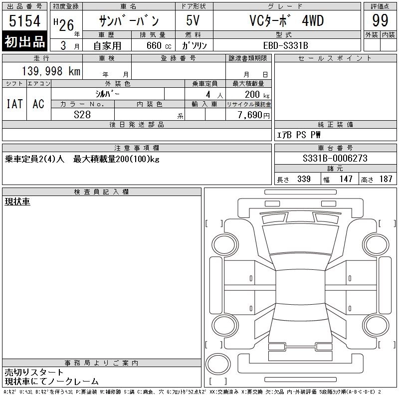 Год выпуска2014 Пробег 140 000 км КузовS331B КомплектацияVC TURBO 4WD