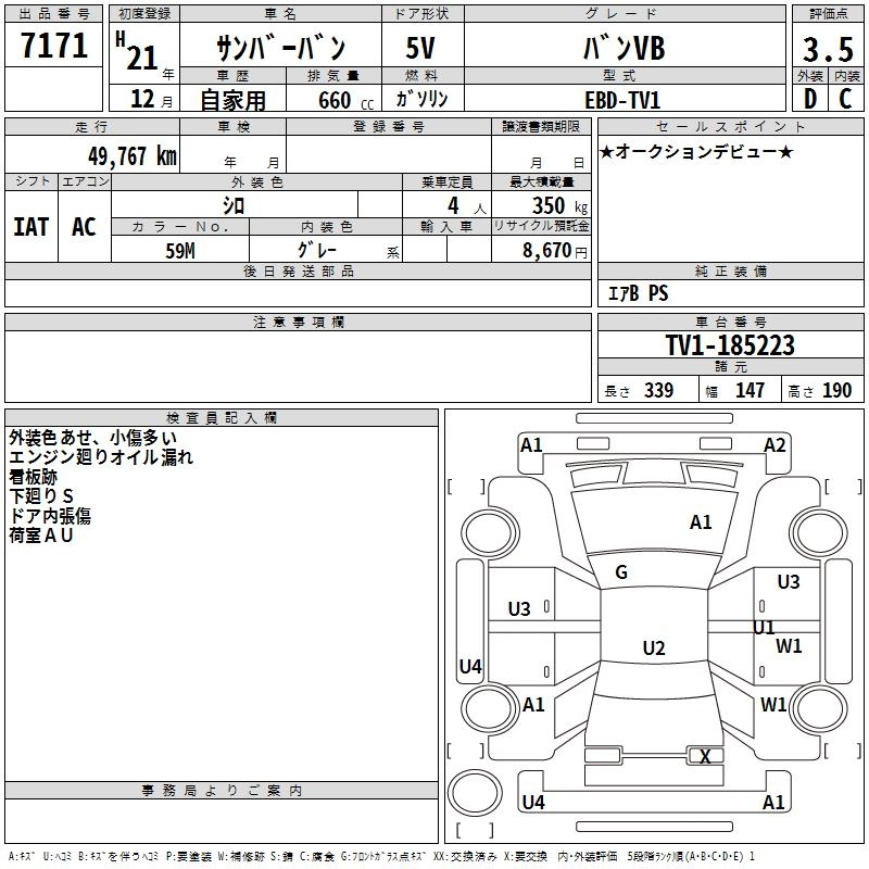 SUBARU SAMBAR VAN 2009 г., лот № 7171