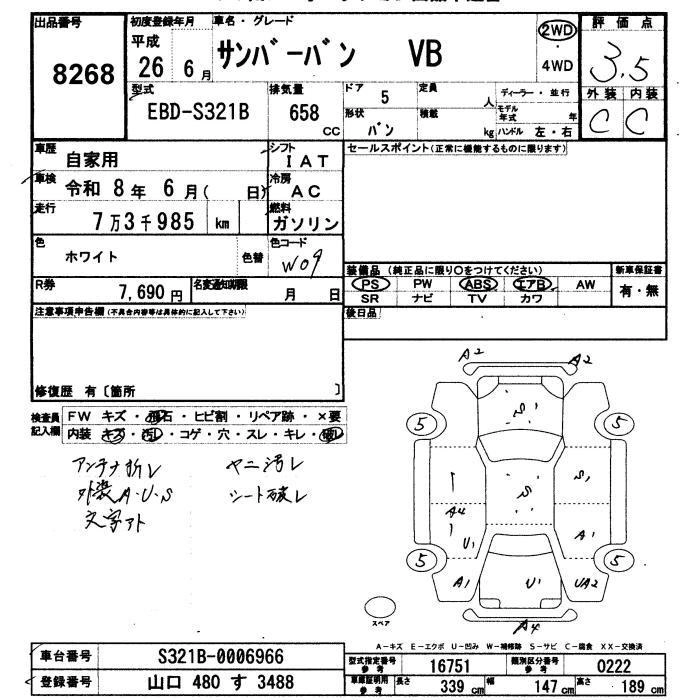 SUBARU SAMBAR VAN 2014 г., лот № 8268
