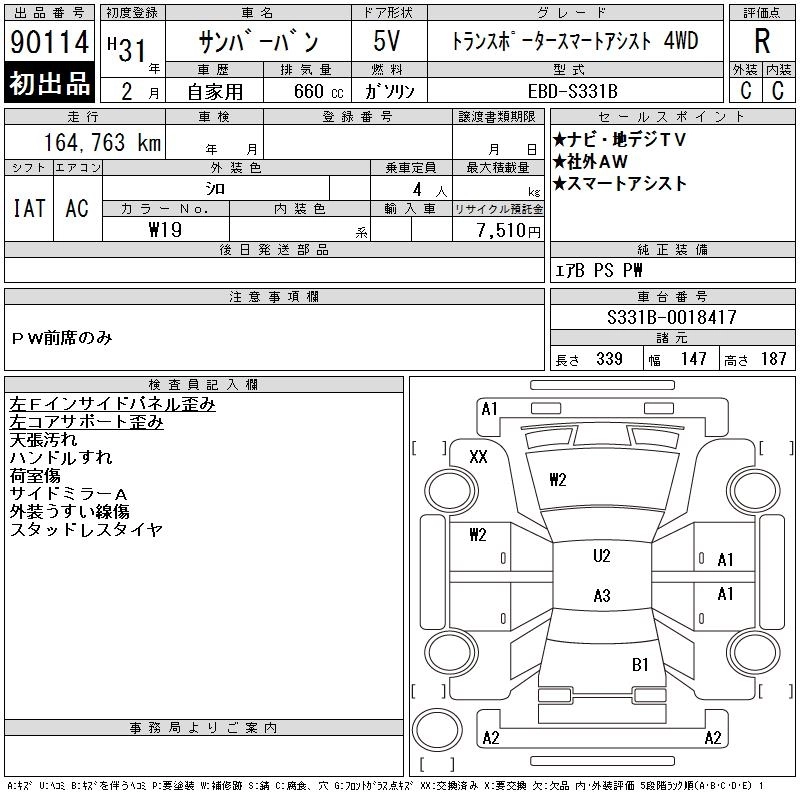 SUBARU SAMBAR VAN 2019 г., лот № 90114