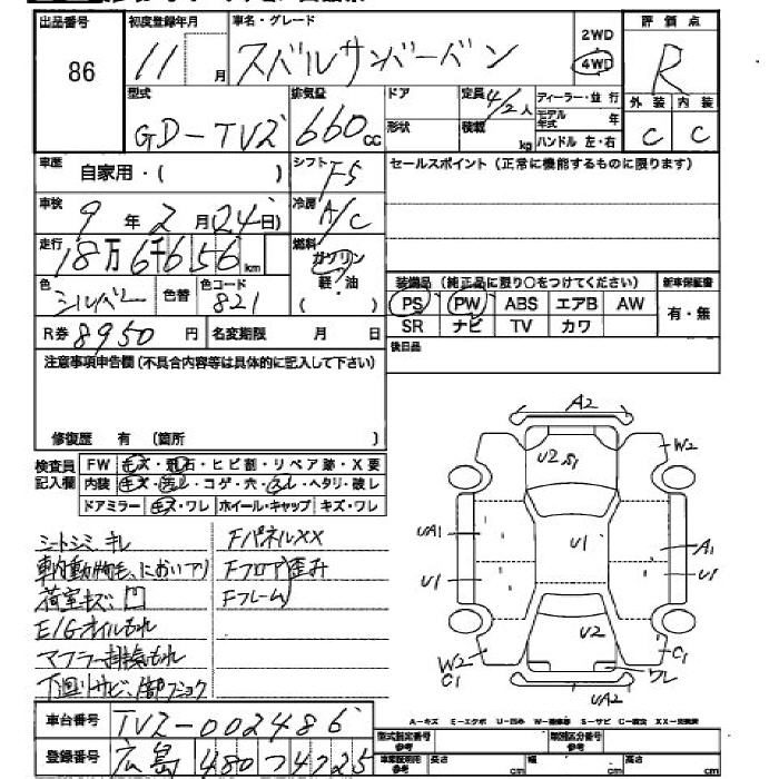 SUBARU SAMBAR VAN 1999 г., лот № 86