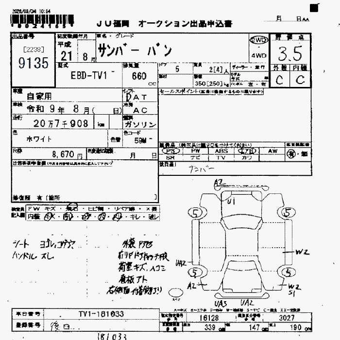 Статус выставлен на аукцион Лот 9135 Аукцион JU Fukuoka Дата аукциона 13.03.2026
