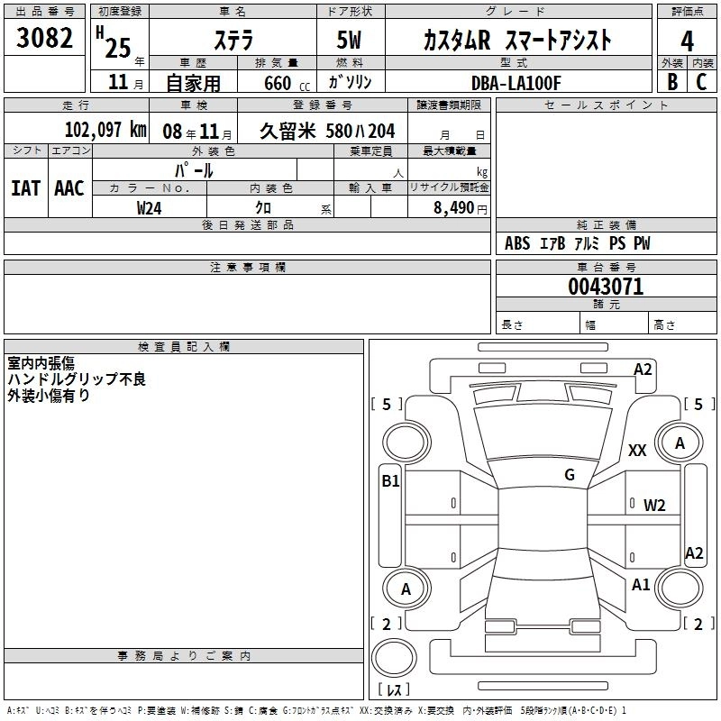 SUBARU STELLA 2013 г., лот № 3082
