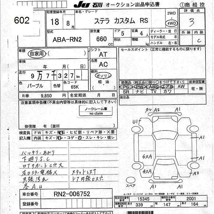 SUBARU STELLA 2006 г., лот № 602