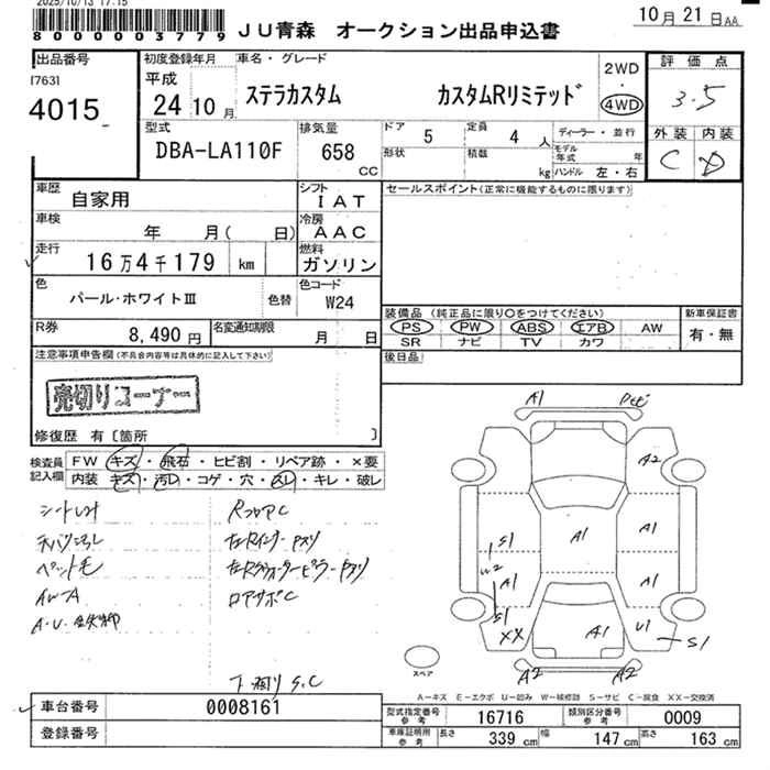 Статус выставлен на аукцион Лот 4015 Аукцион JU Aomori Дата аукциона 21.10.2025