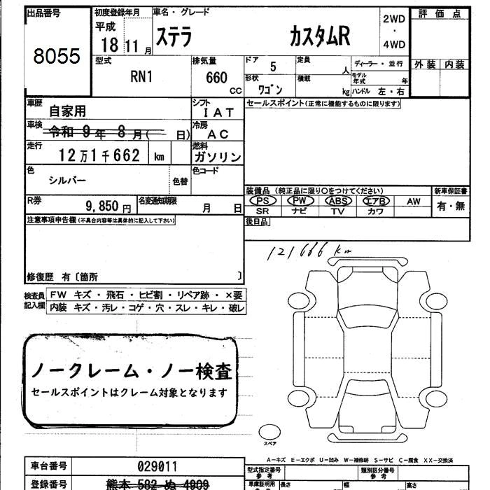 SUBARU STELLA 2006 г., лот № 8055