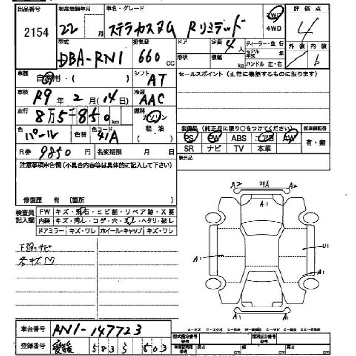SUBARU STELLA 2010 г., лот № 2154
