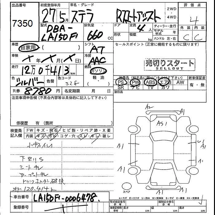 SUBARU STELLA 2015 г., лот № 7350