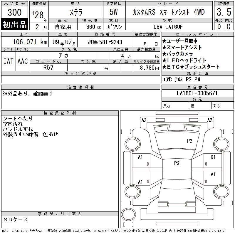 SUBARU STELLA 2016 г., лот № 300