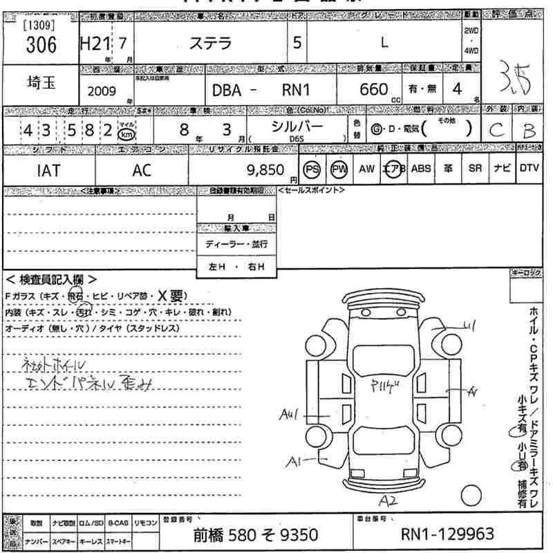 SUBARU STELLA 2009 г., лот № 306