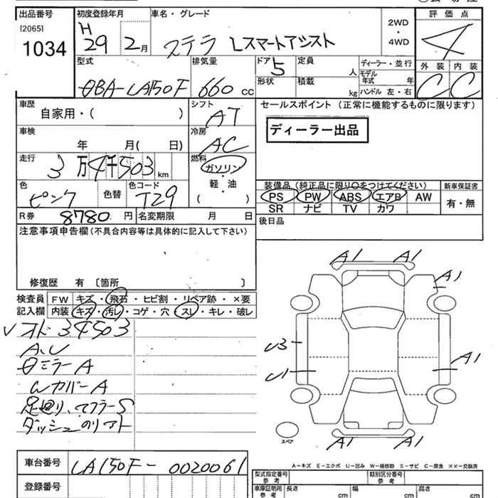 SUBARU STELLA 2017 г., лот № 1034