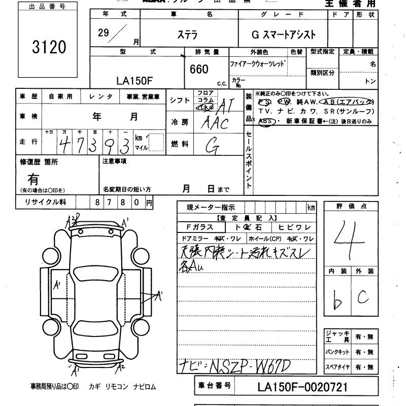 SUBARU STELLA 2017 г., лот № 3120