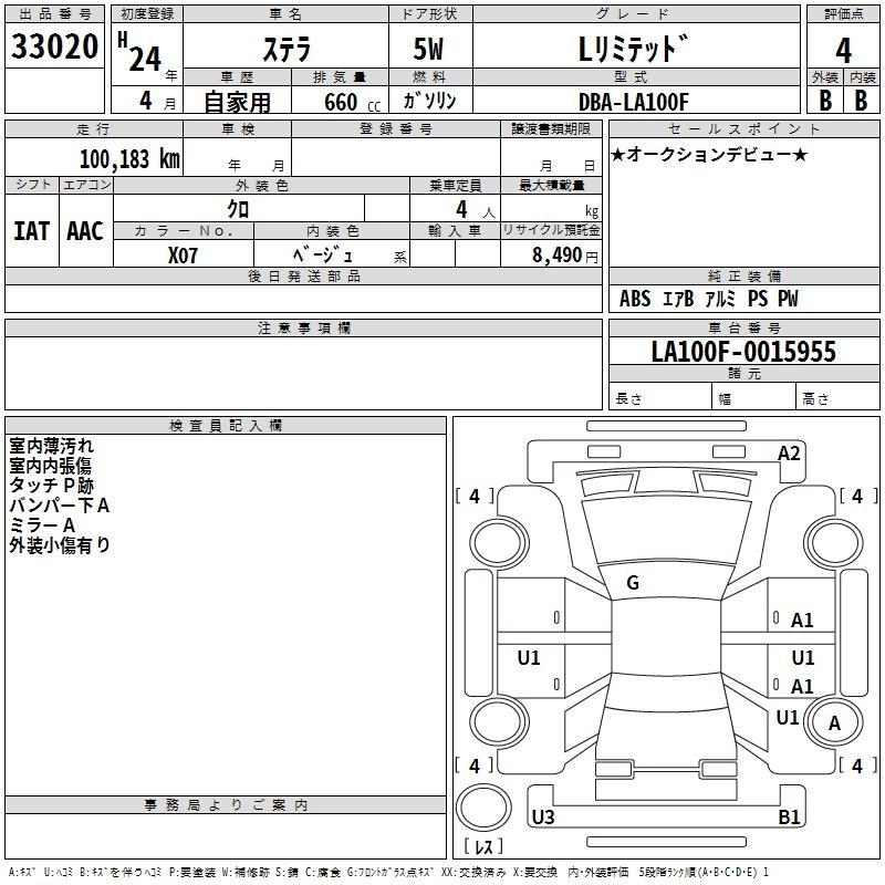 SUBARU STELLA 2012 г., лот № 33020