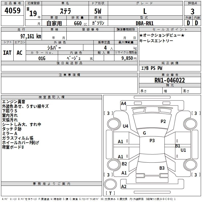 SUBARU STELLA 2007 г., лот № 4059