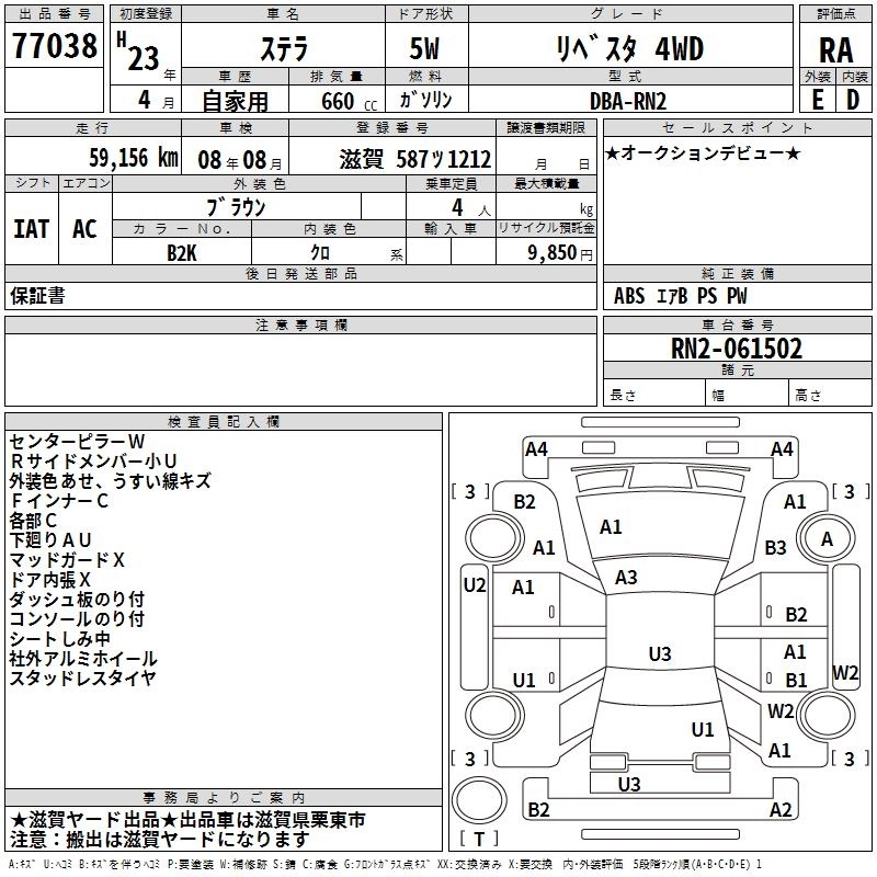 SUBARU STELLA 2011 г., лот № 77038