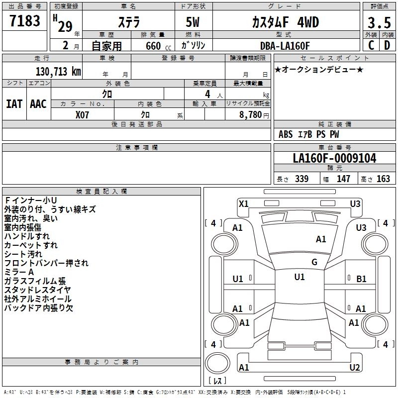 SUBARU STELLA 2017 г., лот № 7183