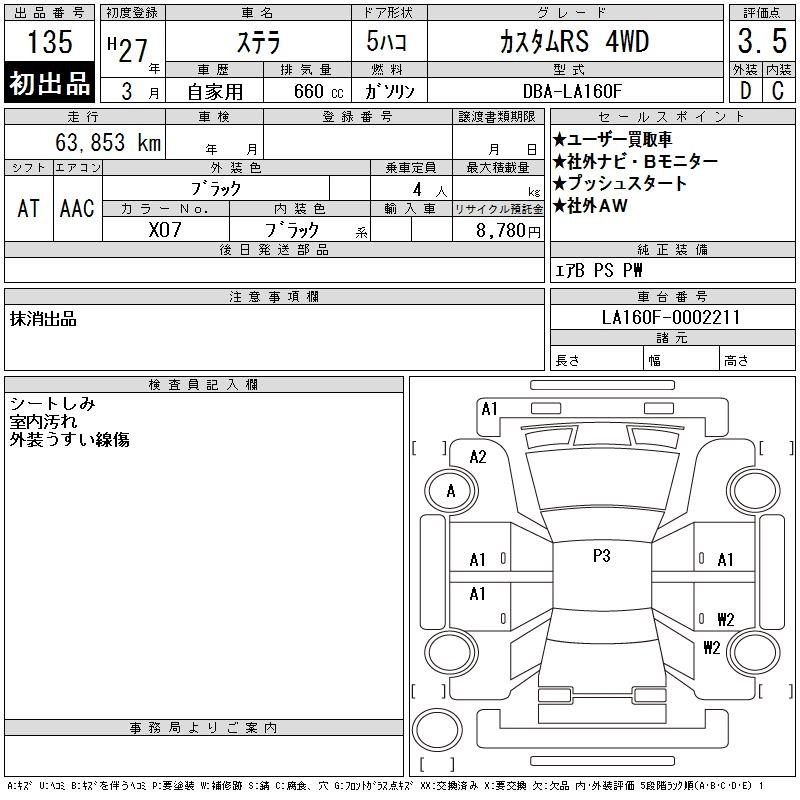 SUBARU STELLA 2015 г., лот № 135