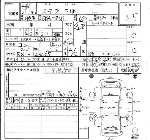 SUBARU STELLA 2009 г., лот № 1008