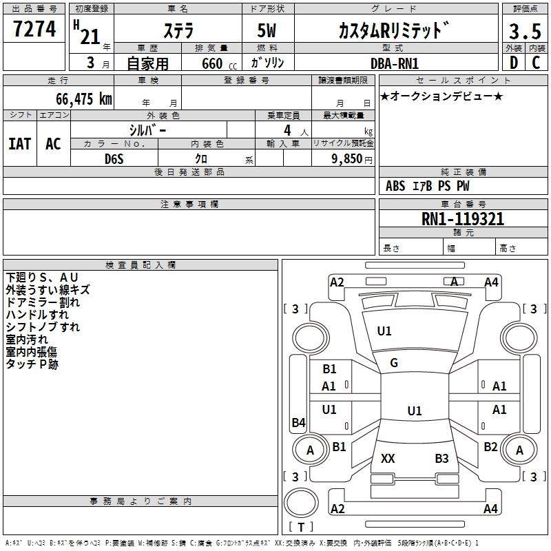 SUBARU STELLA 2009 г., лот № 7274