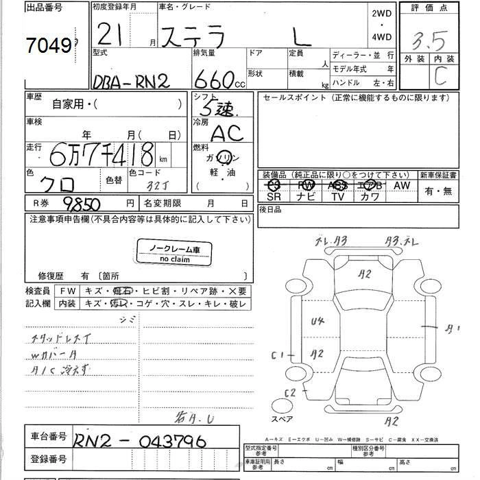 SUBARU STELLA 2009 г., лот № 7049