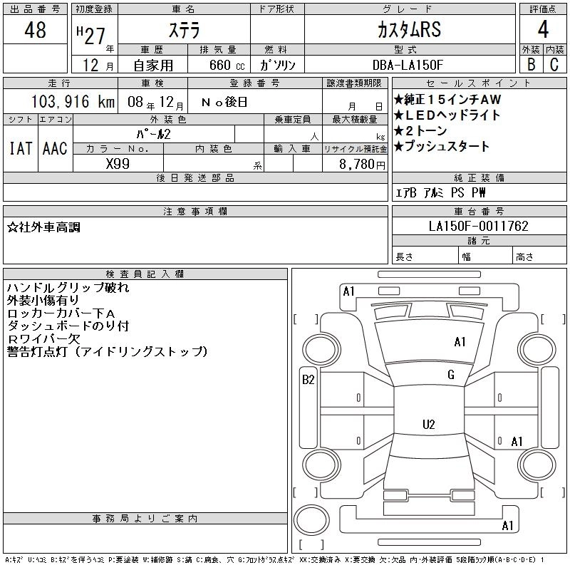 SUBARU STELLA 2015 г., лот № 48