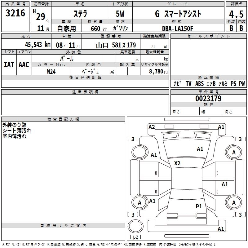 SUBARU STELLA 2017 г., лот № 3216