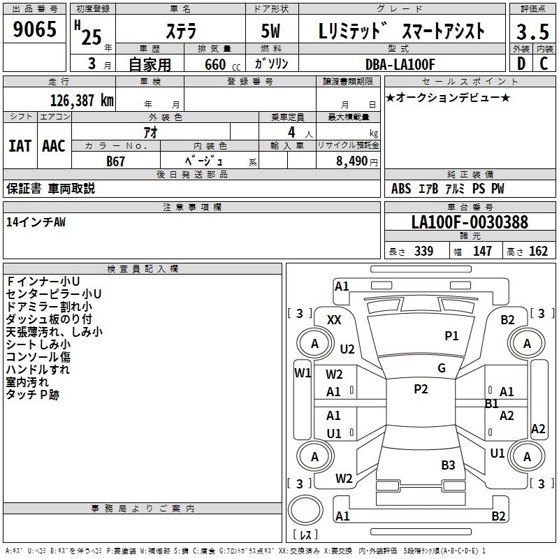 SUBARU STELLA 2013 г., лот № 9065