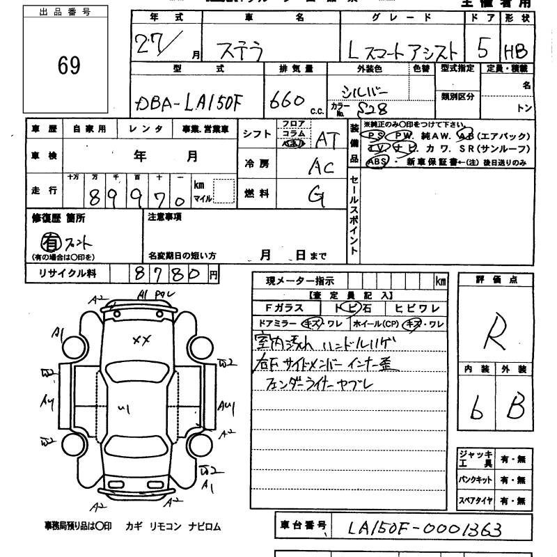 SUBARU STELLA 2015 г., лот № 69