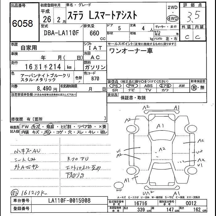 SUBARU STELLA 2014 г., лот № 6058