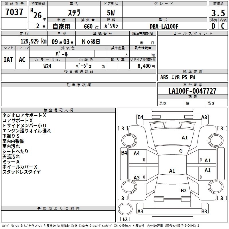 SUBARU STELLA 2014 г., лот № 7037