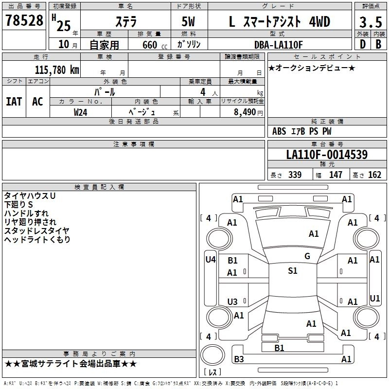 SUBARU STELLA 2013 г., лот № 78528
