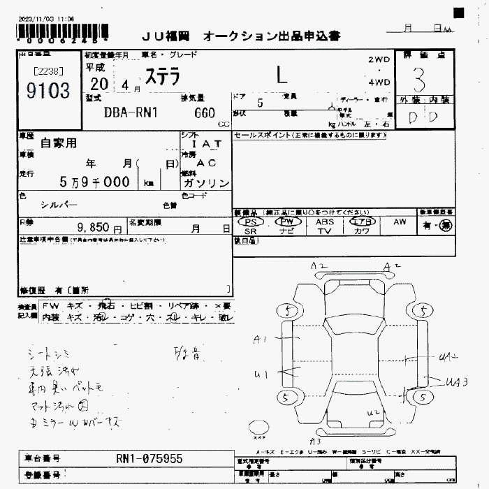 Статус выставлен на аукцион Лот 9103 Аукцион JU Fukuoka Дата аукциона 13.03.2026