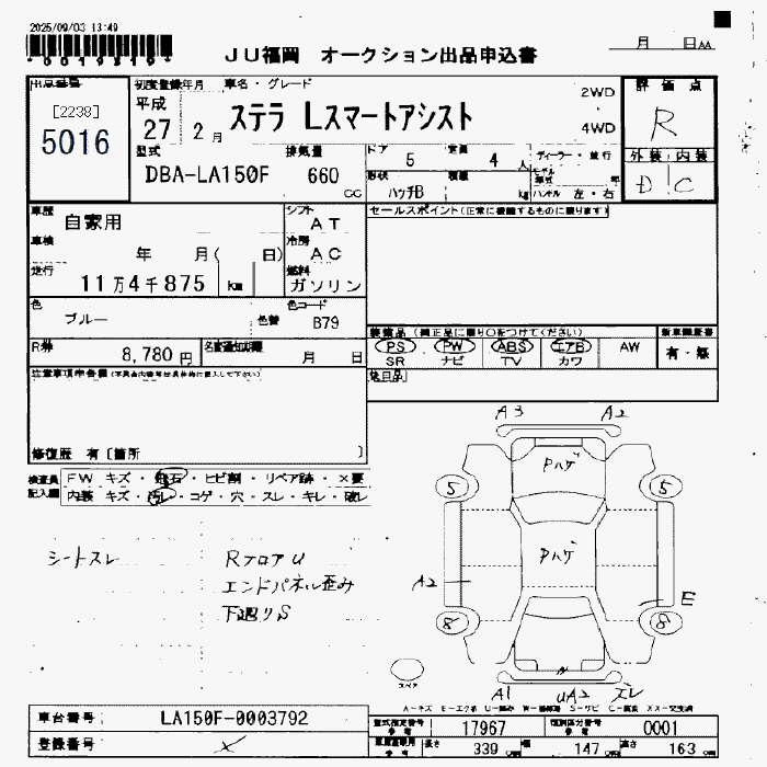 Статус выставлен на аукцион Лот 5016 Аукцион JU Fukuoka Дата аукциона 13.03.2026