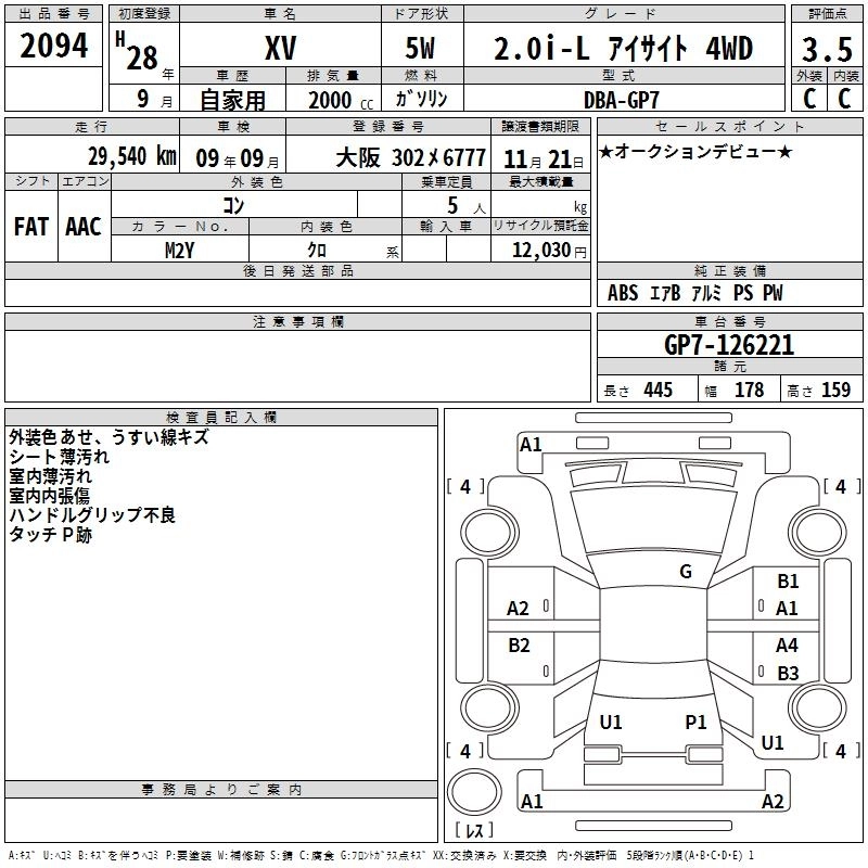 Год выпуска2016 Пробег 30 000 км КузовGP7 Комплектация2.0I-L EYESIGHT 4WD