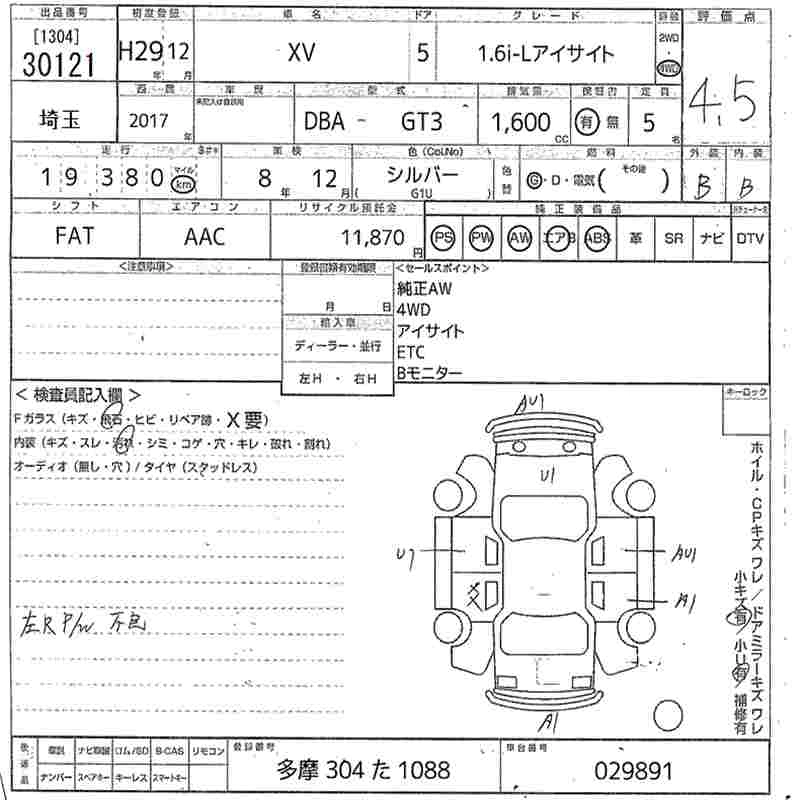 SUBARU SUBARU XV 2017 г., лот № 30121