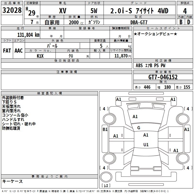 SUBARU SUBARU XV 2017 г., лот № 32028