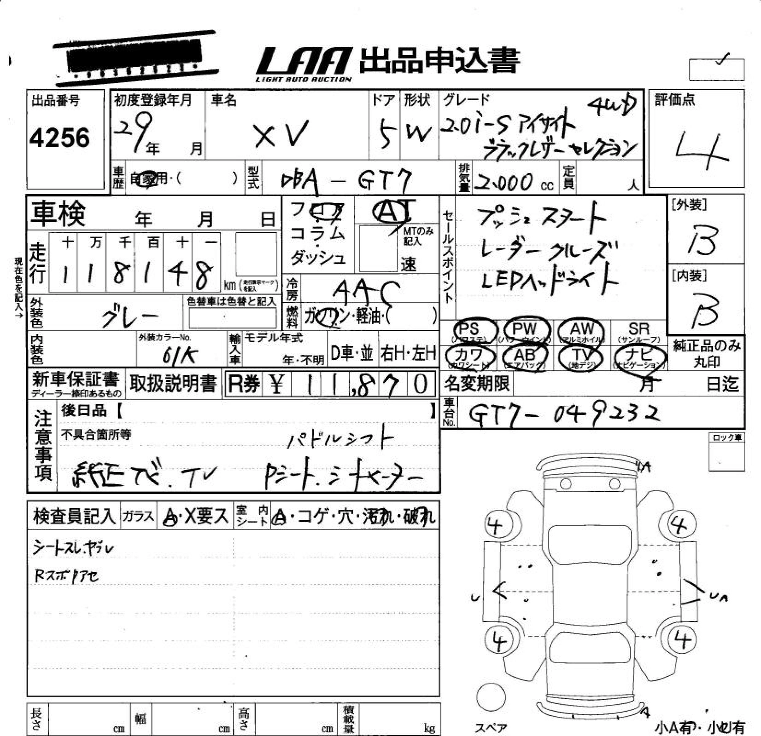 SUBARU SUBARU XV 2017 г., лот № 4256