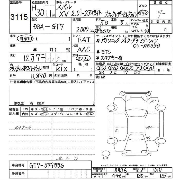 SUBARU SUBARU XV 2018 г., лот № 3115