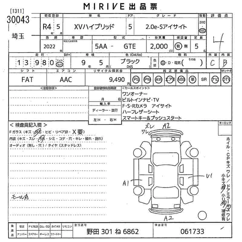 SUBARU SUBARU XV 2022 г., лот № 30043