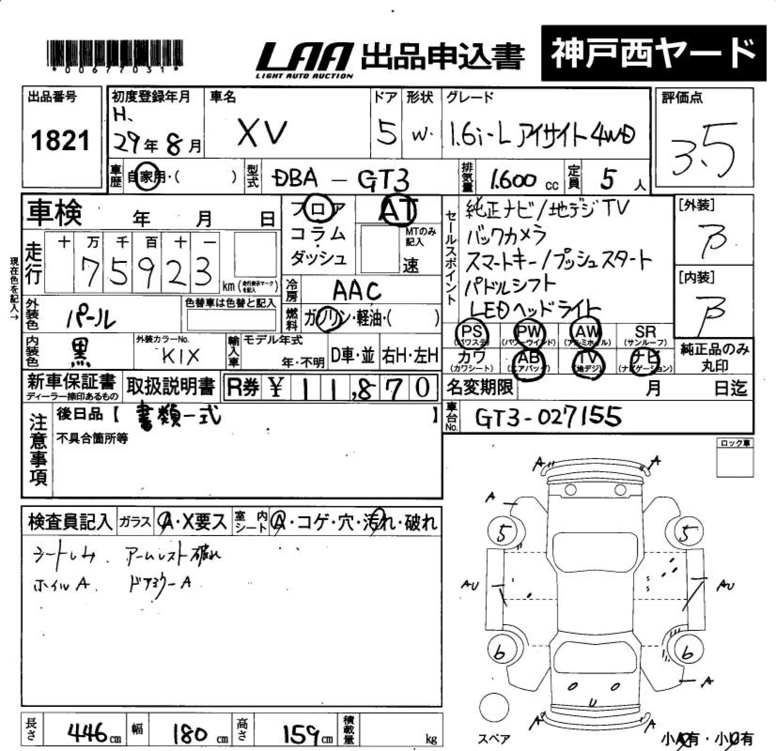 Статус продан Лот 1821 Аукцион LAA Okayama Дата аукциона 23.01.2026