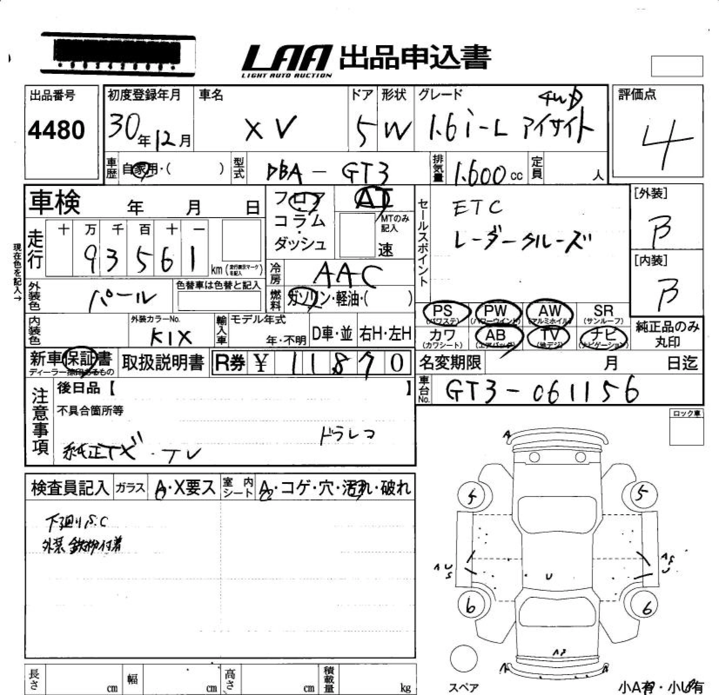 Год выпуска2018 Пробег 94 000 км КузовGT3 Комплектация1.6I-L EYESIGHT 4W