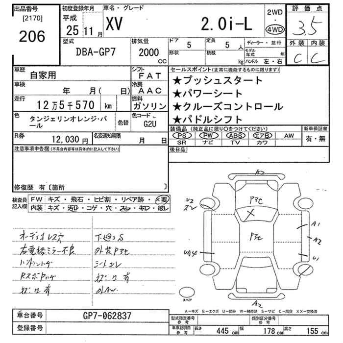 SUBARU SUBARU XV 2013 г., лот № 206
