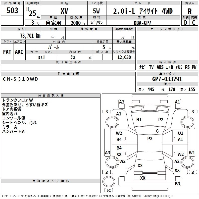 Год выпуска2013 Пробег 79 000 км КузовGP7 Комплектация2.0I-L EYESIGHT 4WD