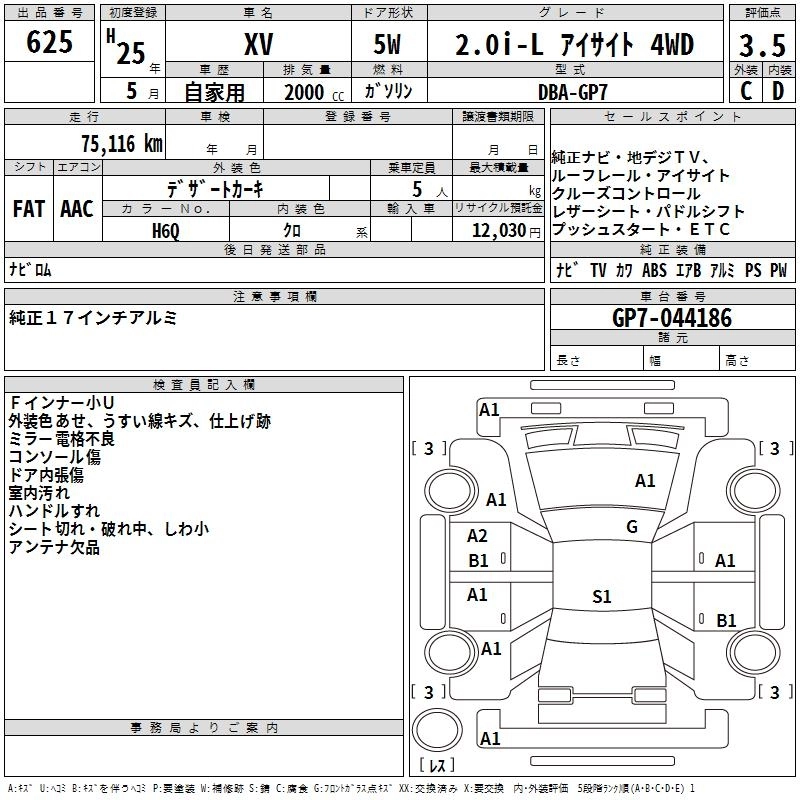 Год выпуска2013 Пробег 75 000 км КузовGP7 Комплектация2.0I-L EYESIGHT 4WD