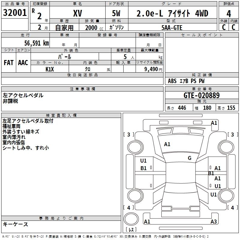 SUBARU SUBARU XV 2020 г., лот № 32001