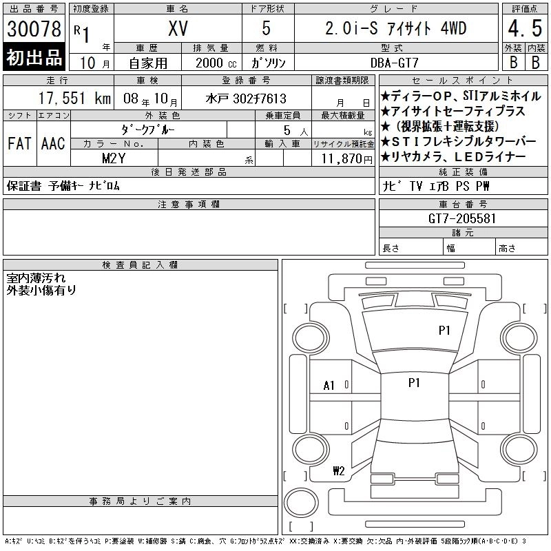 SUBARU SUBARU XV 2019 г., лот № 30078