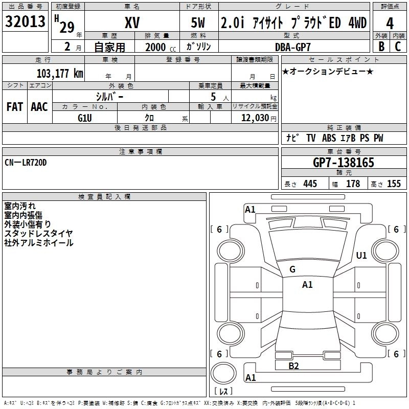 SUBARU SUBARU XV 2017 г., лот № 32013