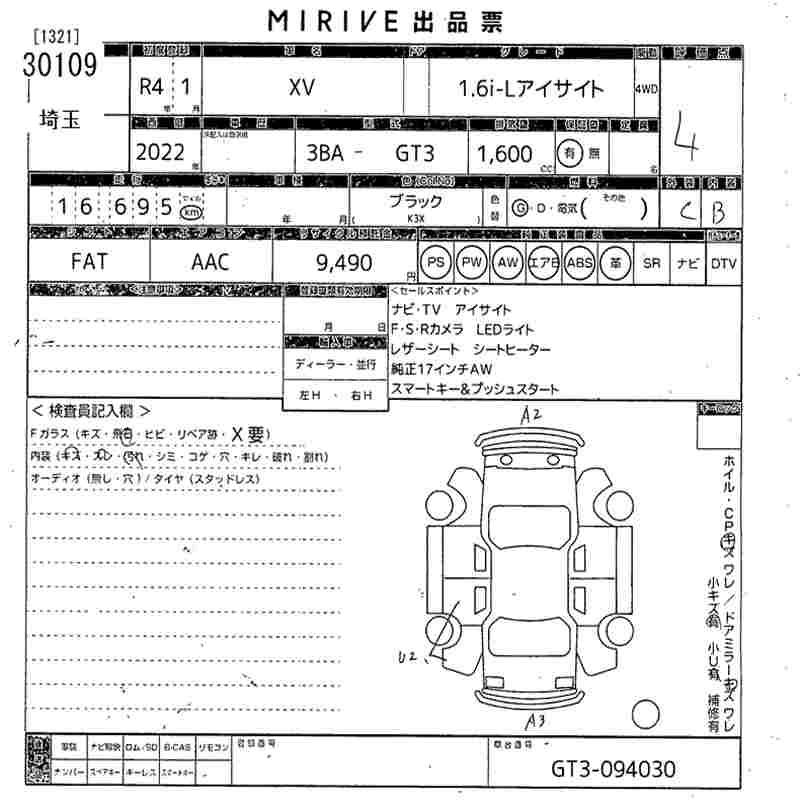 SUBARU SUBARU XV 2022 г., лот № 30109