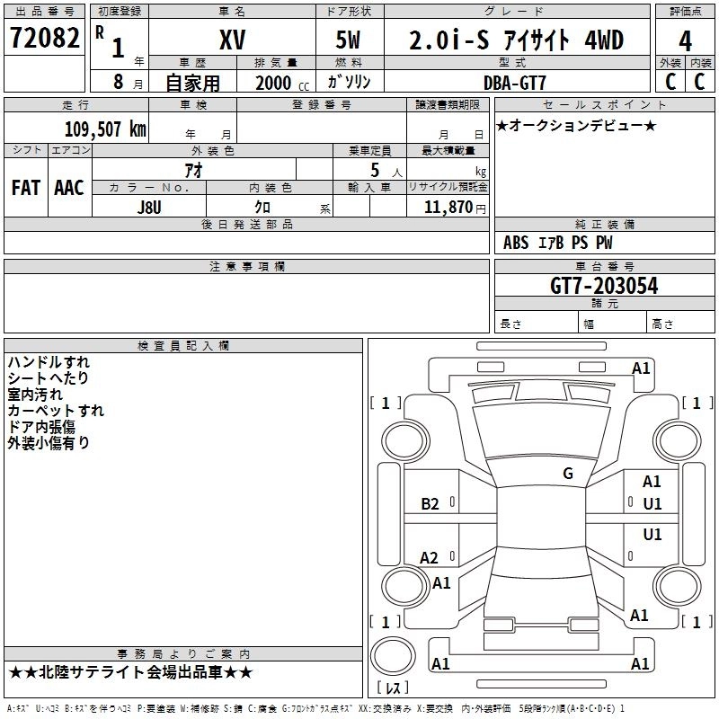Статус выставлен на аукцион Лот 72082 Аукцион TAA Chubu Дата аукциона 12.03.2026