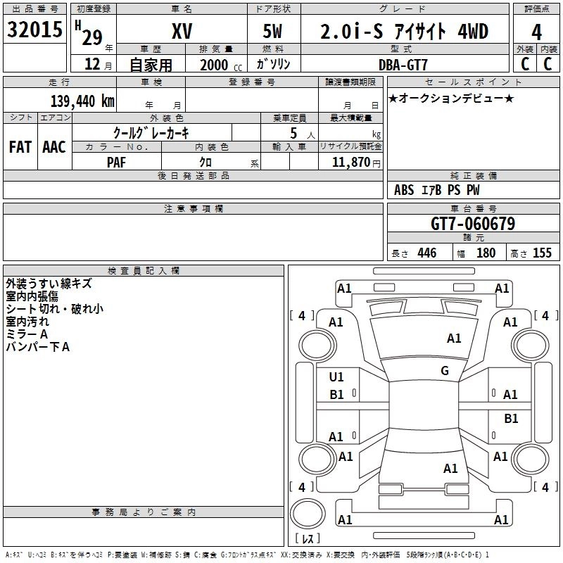 SUBARU SUBARU XV 2017 г., лот № 32015